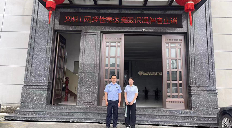 瑞安市公安局南濱派出所民警在希望機(jī)械有限公司宣傳打擊整治網(wǎng)絡(luò)謠言